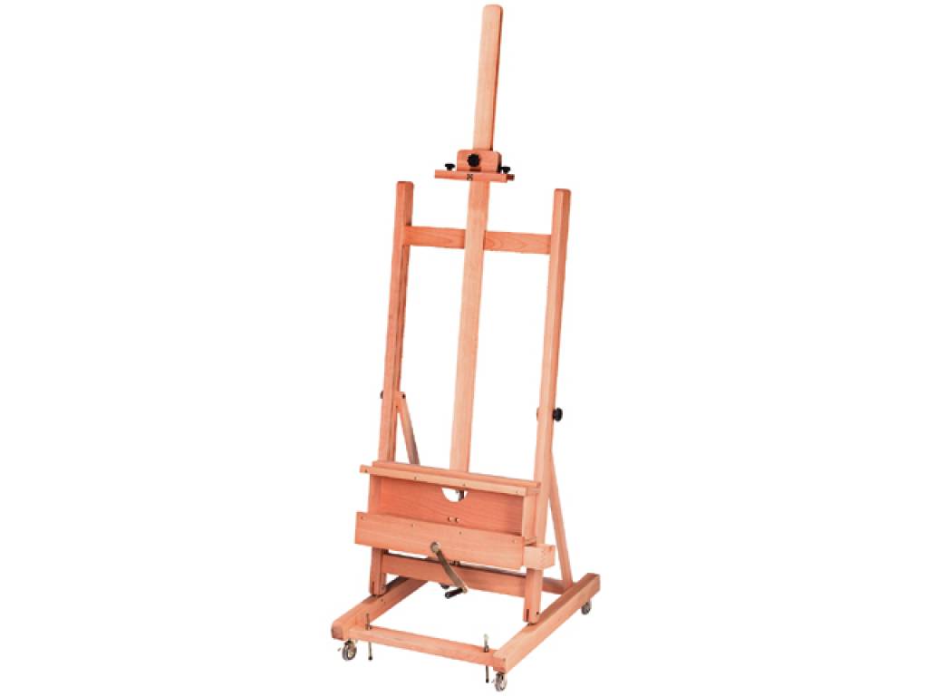 27.8 kg Gewicht Zeer degelijke, solide atelierezel in geolied beukenhout Extra brede doekdrager van 68 cm Inklapbare voet Uitgevoerd met grote, makkelijk bedienbare knoppen voor het instellen
